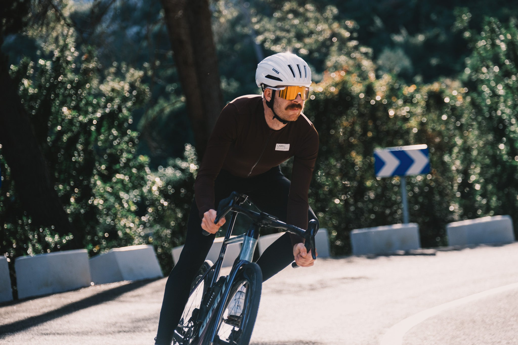 We designed each piece with calm focus, clean silhouettes, natural tones, and technical fabrics that move with you. Lightweight where it matters, breathable where you need it most. Nothing extra, nothing loud. Just a quiet kind of performance that lets you feel the ride.