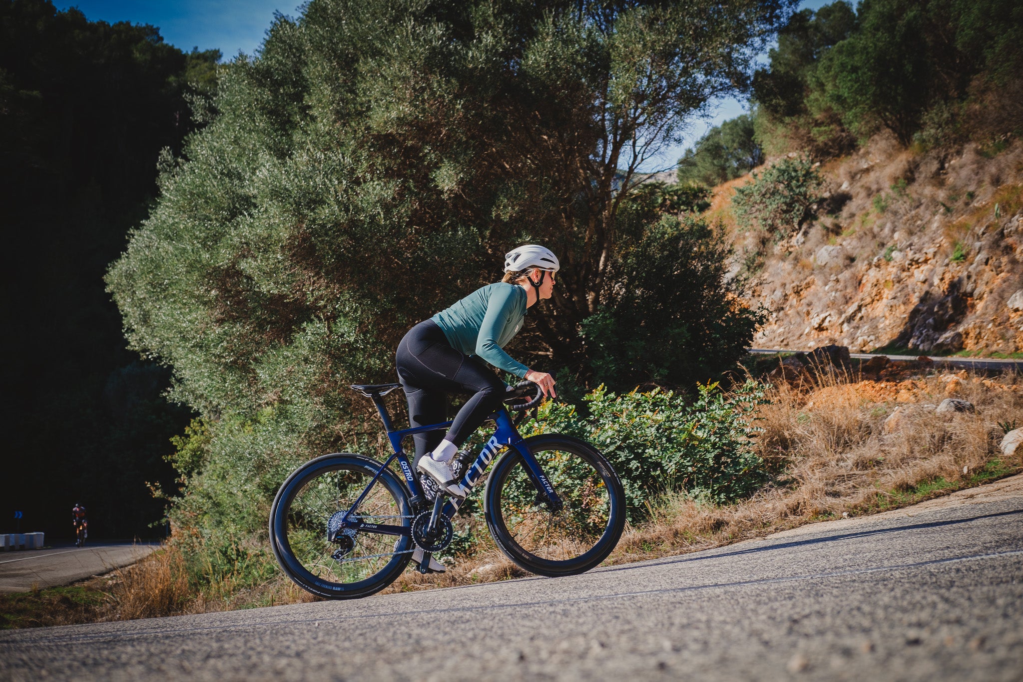 We designed each piece with calm focus, clean silhouettes, natural tones, and technical fabrics that move with you. Lightweight where it matters, breathable where you need it most. Nothing extra, nothing loud. Just a quiet kind of performance that lets you feel the ride.